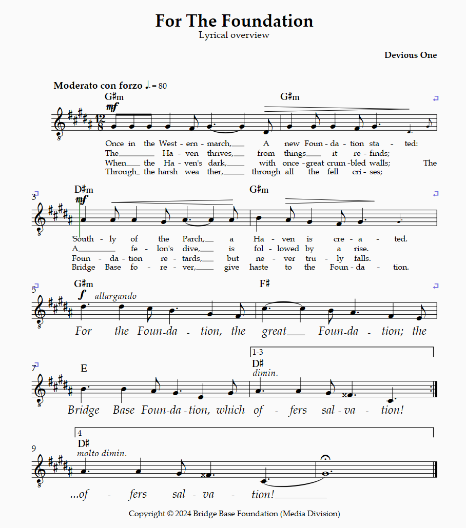 For the Foundation, the great Foundation;The Bridge Base Foundation, which offers salvation!